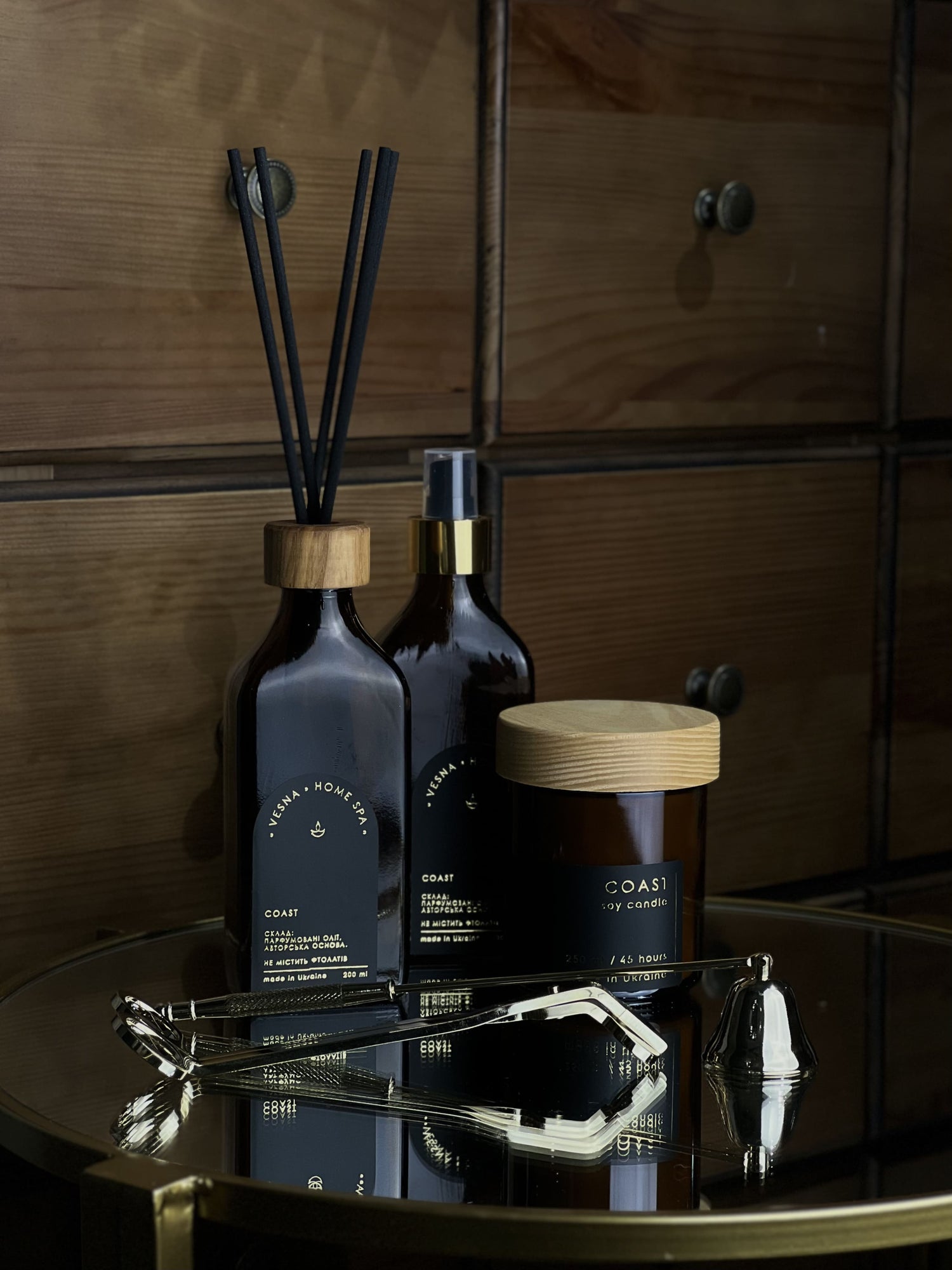 Затримавши подих, ми знайомимо вас з нашою постійною Premium колекцією унікальних ароматів для дому. Колекція складається з трьох продуктів: Аромасвічка + Дифузор + Парфум для дому/білизни та має сім ароматів, що відповідно для сіми днів тижня.