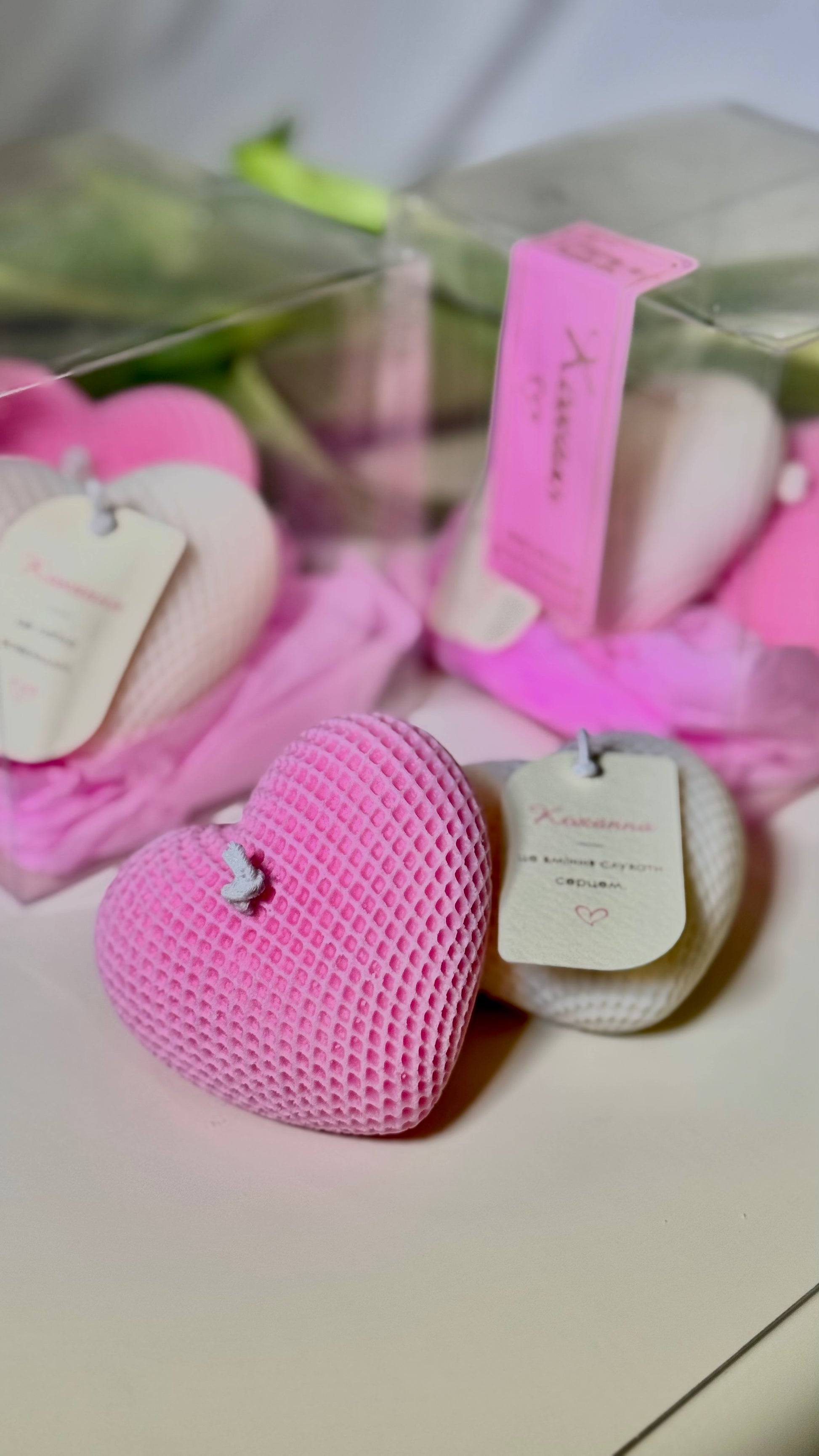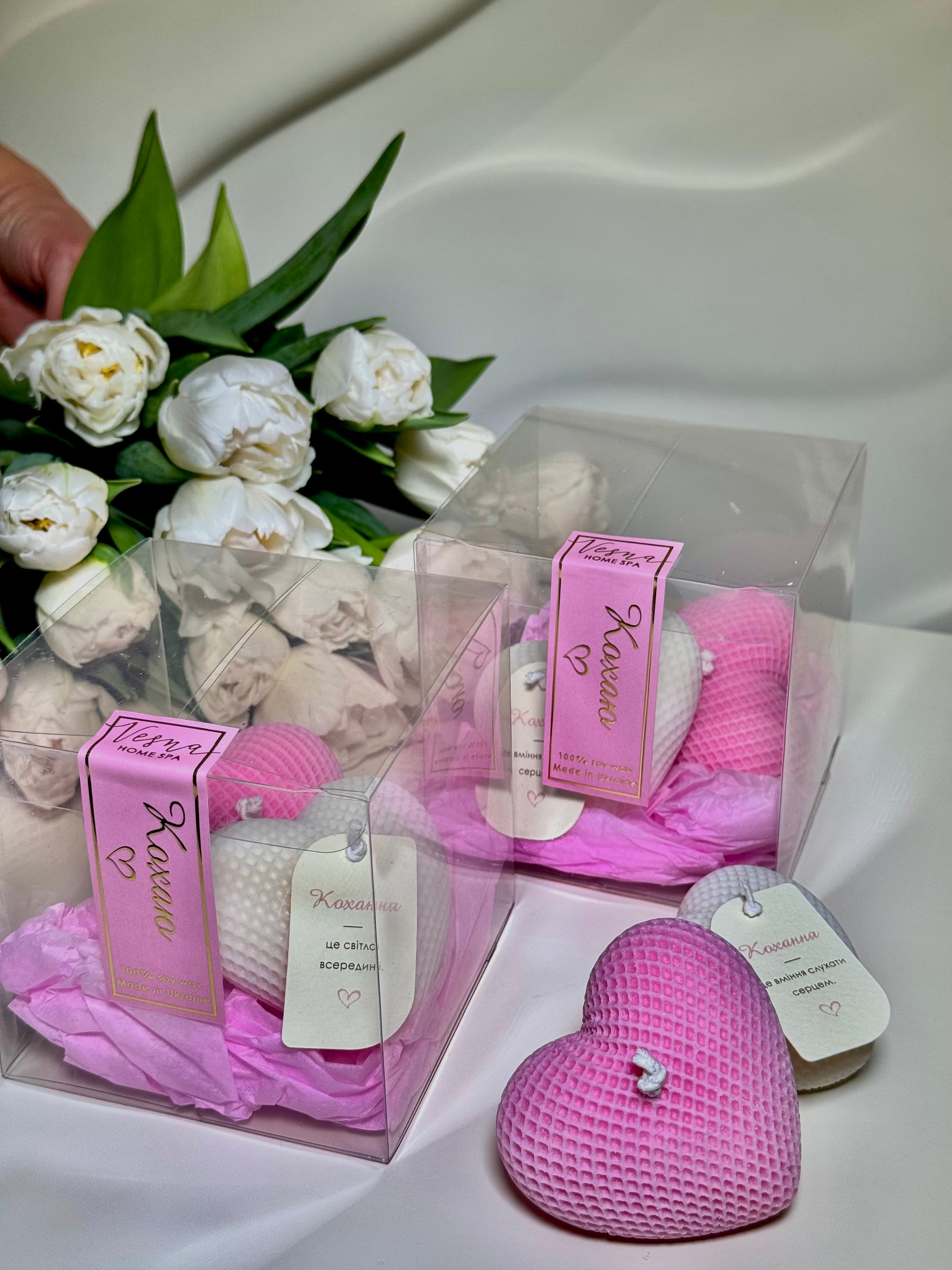 Набір складається з двох свічок у формі сердець — символу єдності та взаємних почуттів.